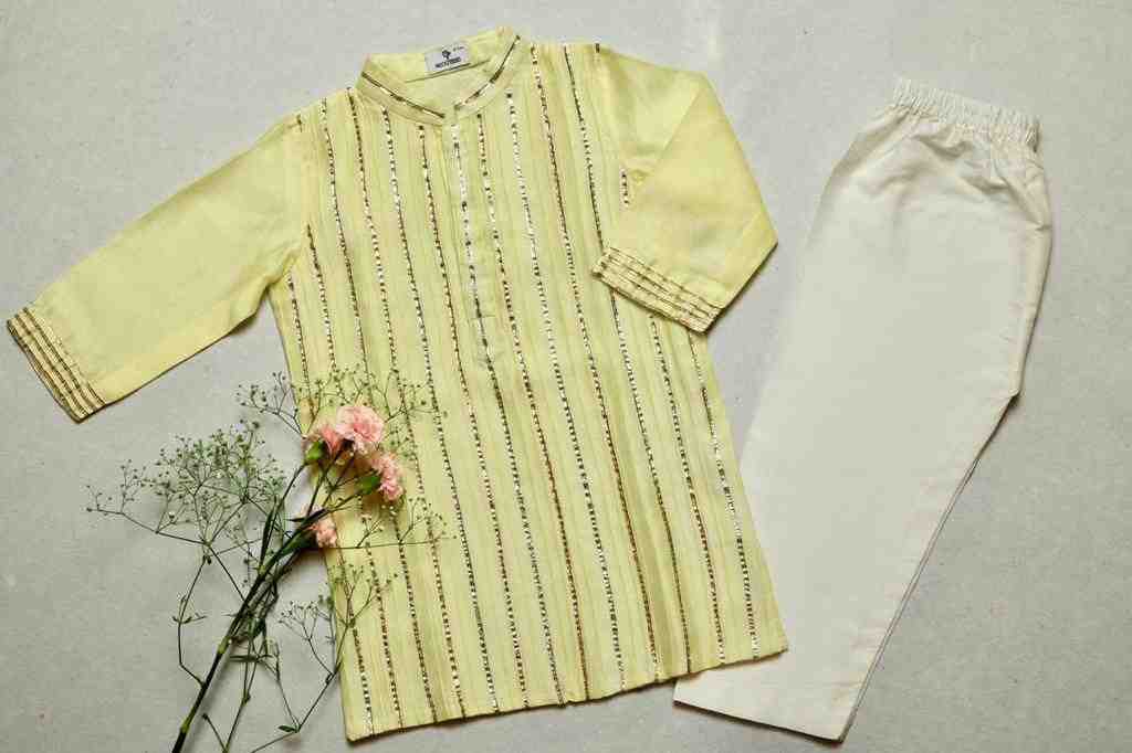 Lemon Yellow Pintuck Kurta & Ivory Pyjama