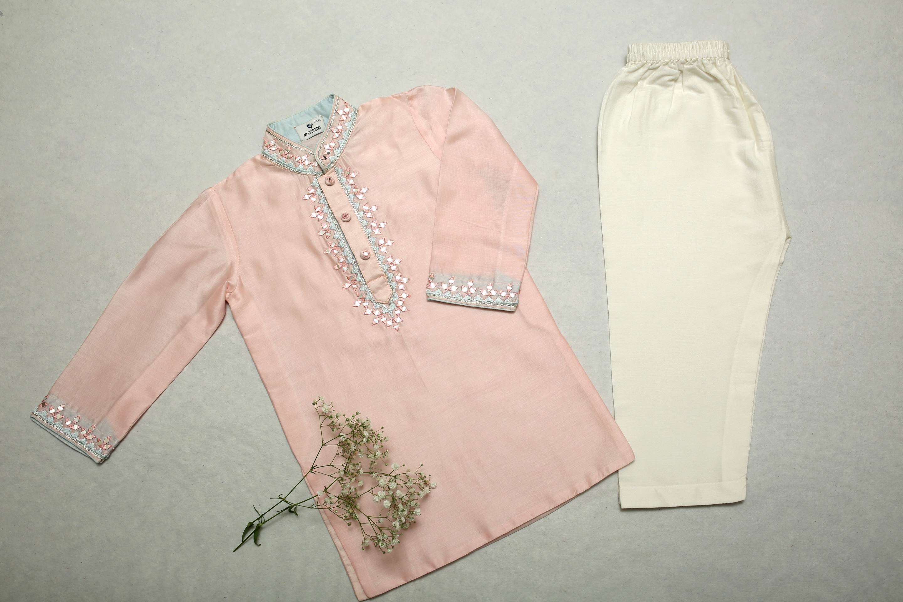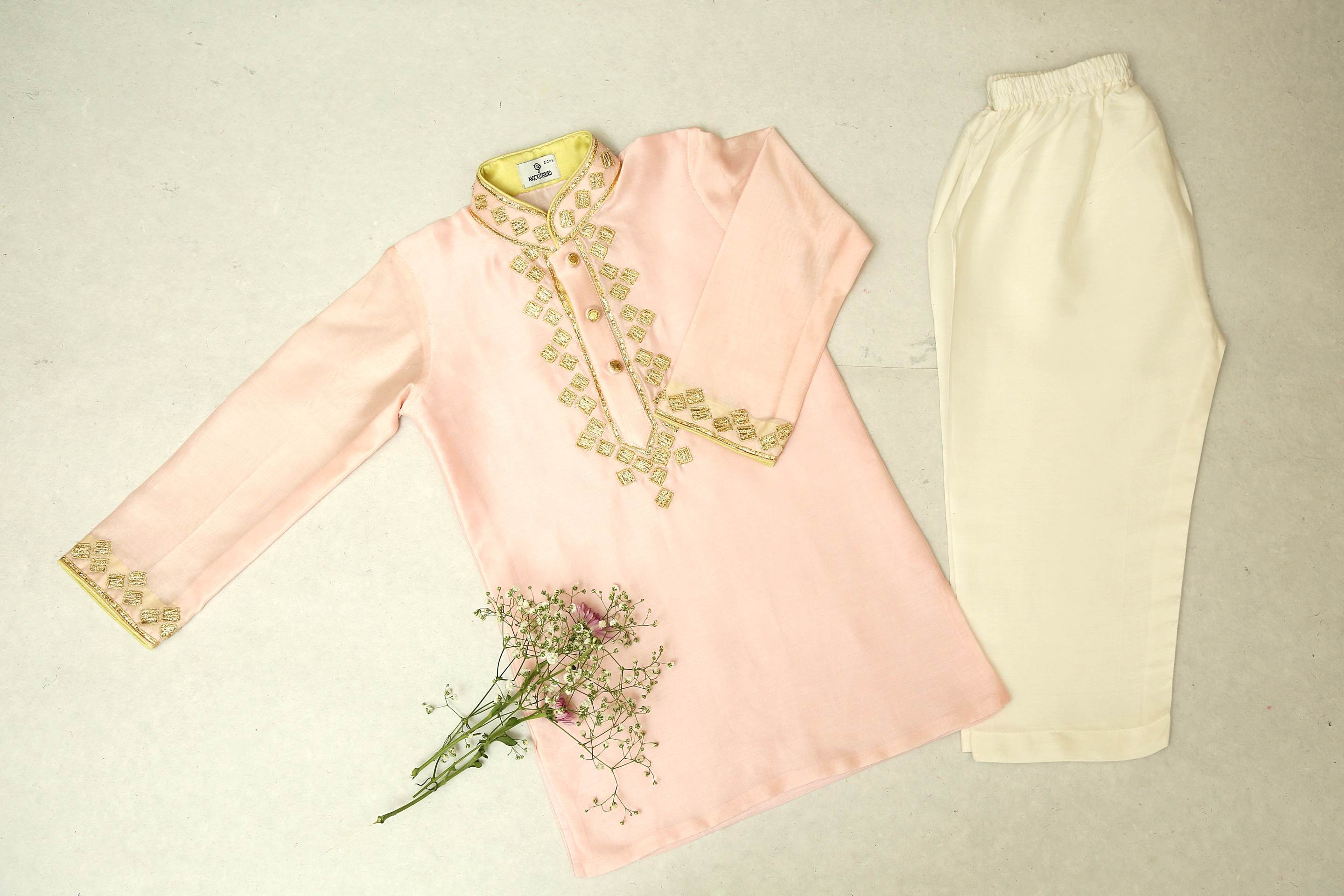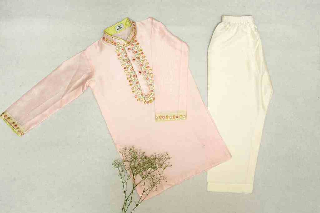 Baby Pink Kurta With Gota, Resham And Mirror