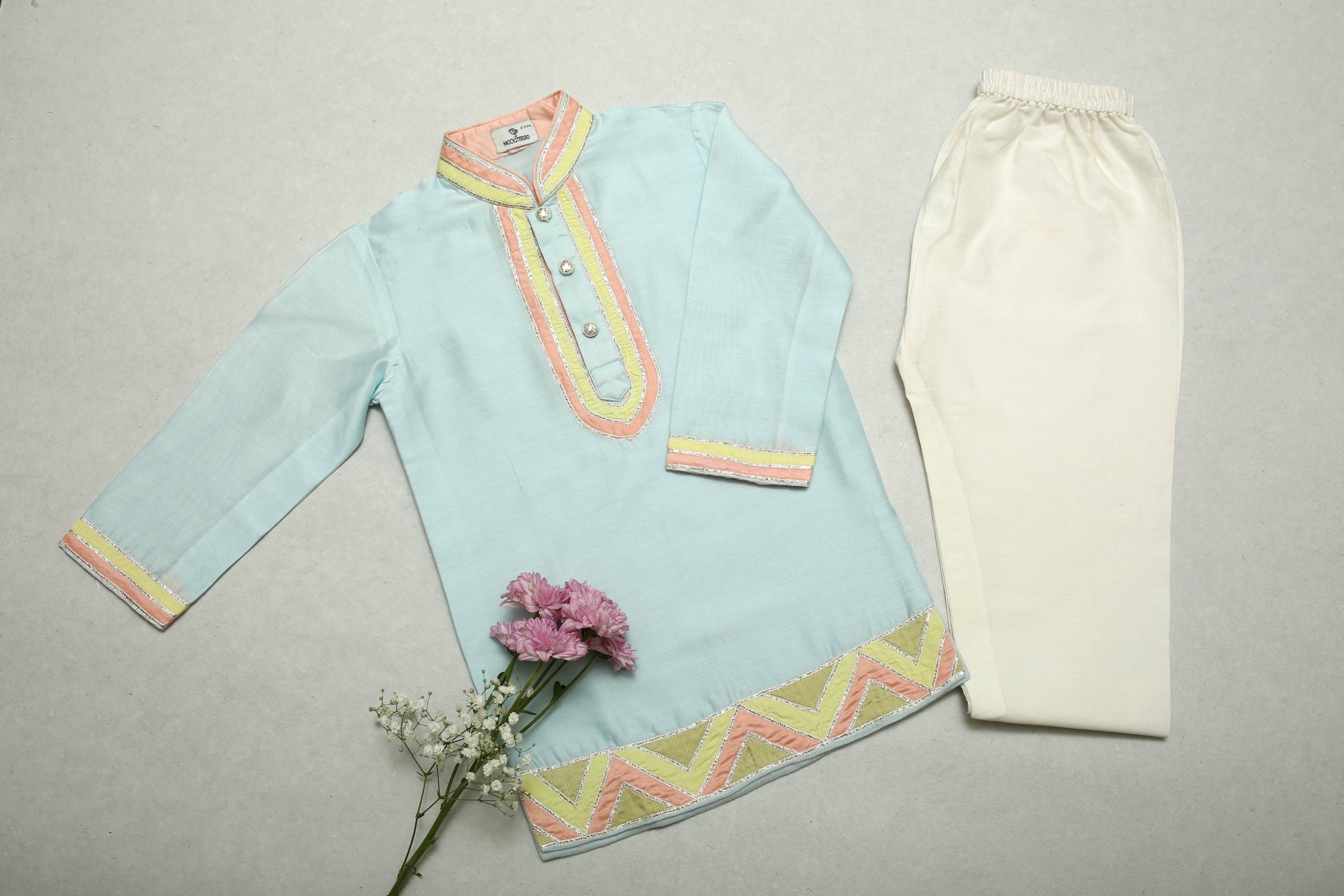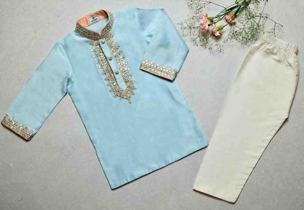 Blue Kurta with Ivory Pyjama