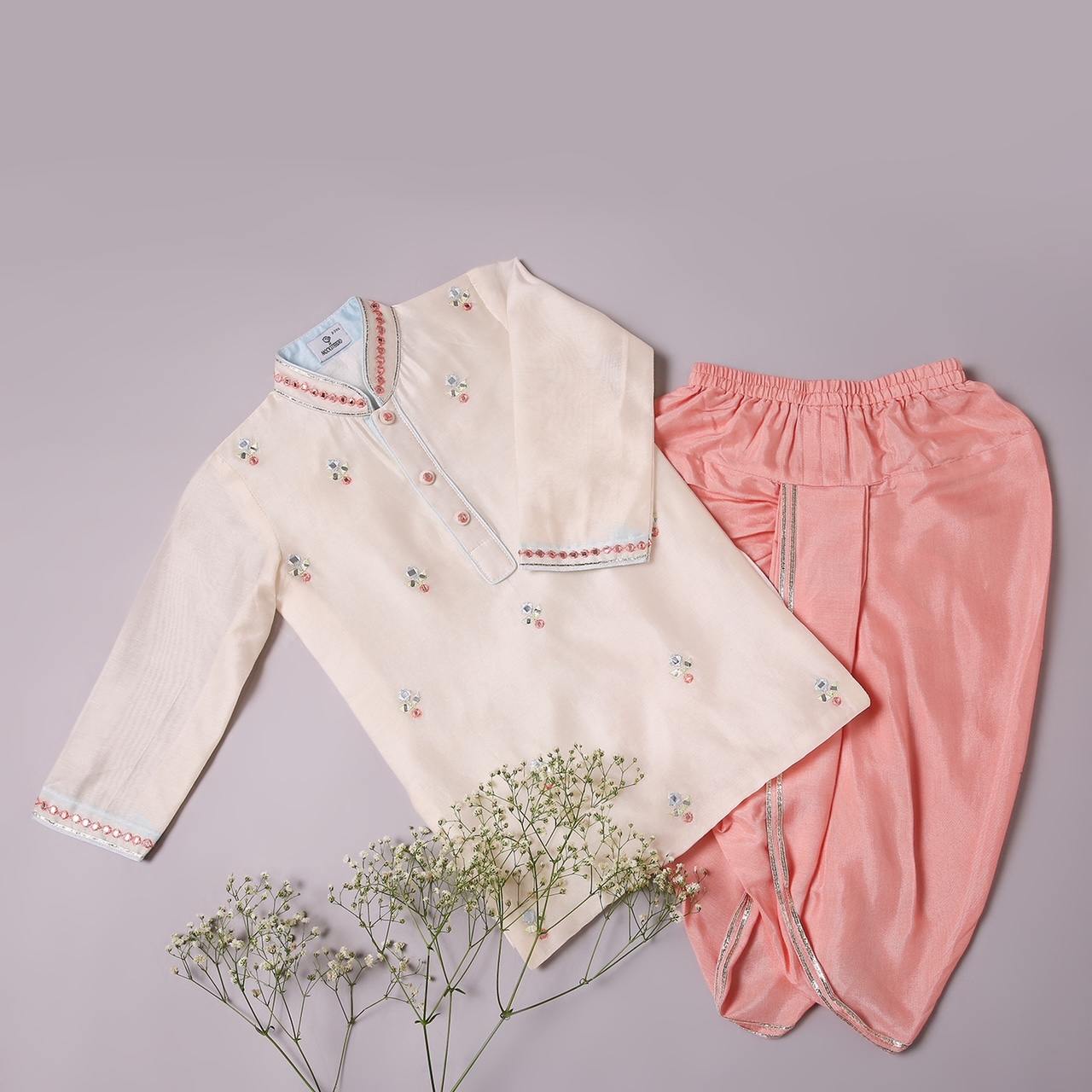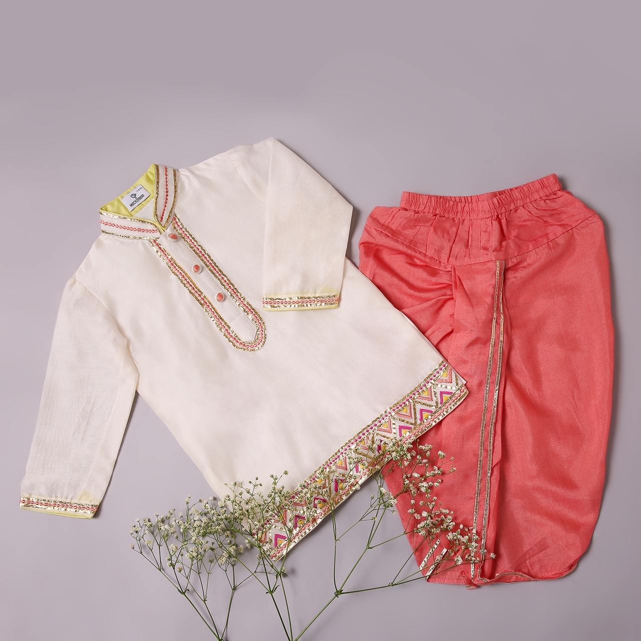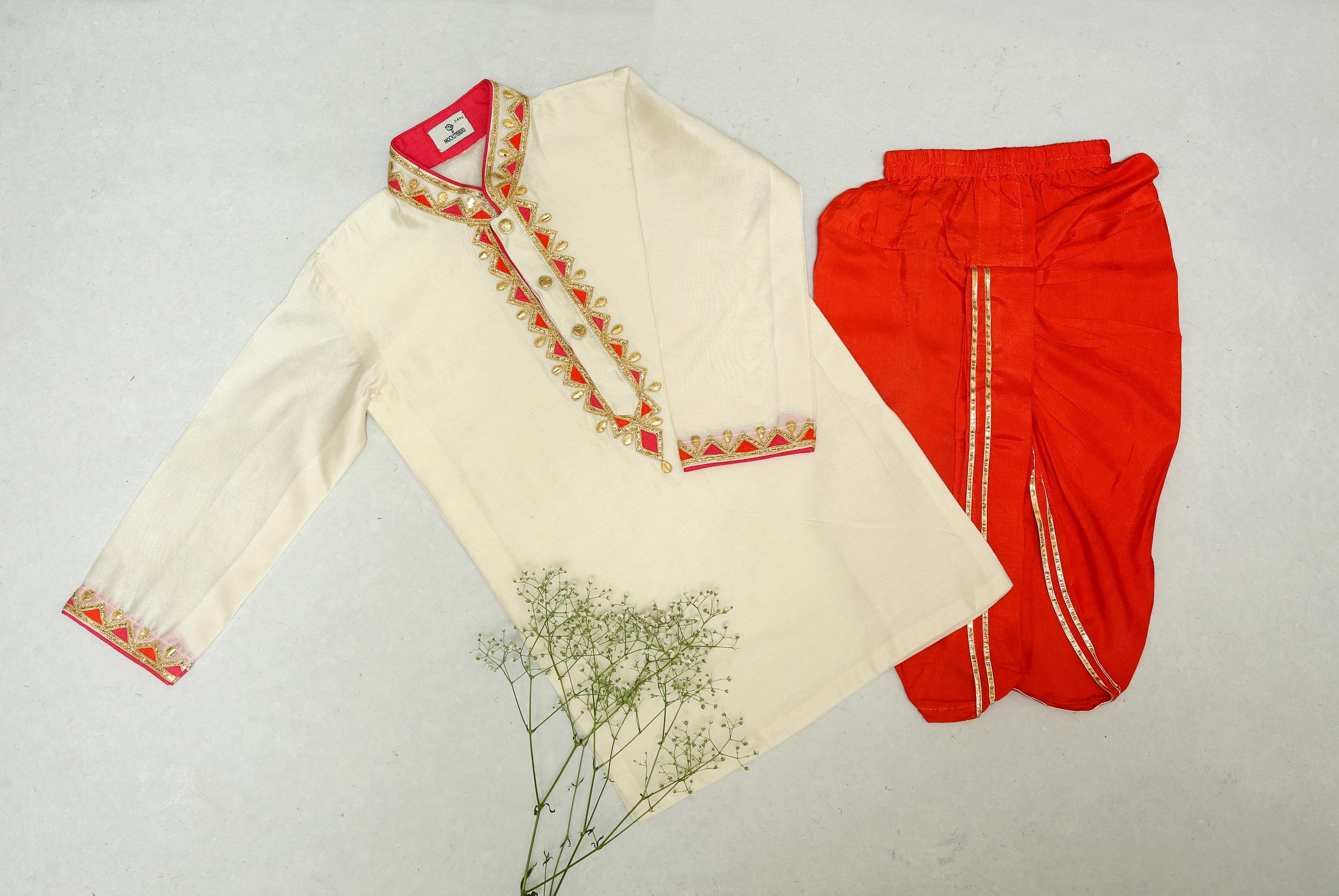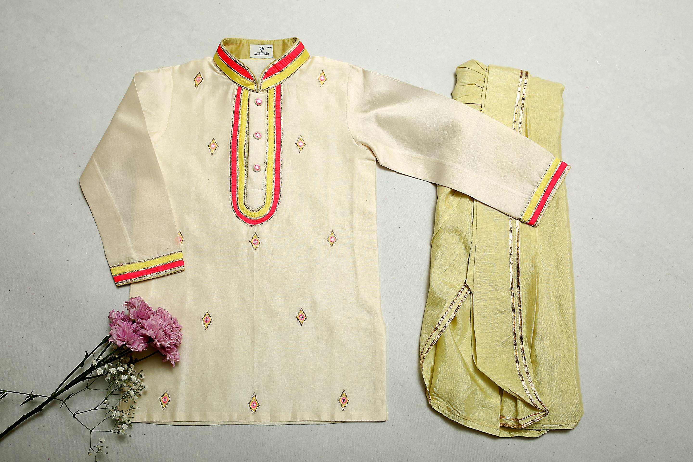 Ivory Kurta With Gota Embroidery & Pink Dhoti