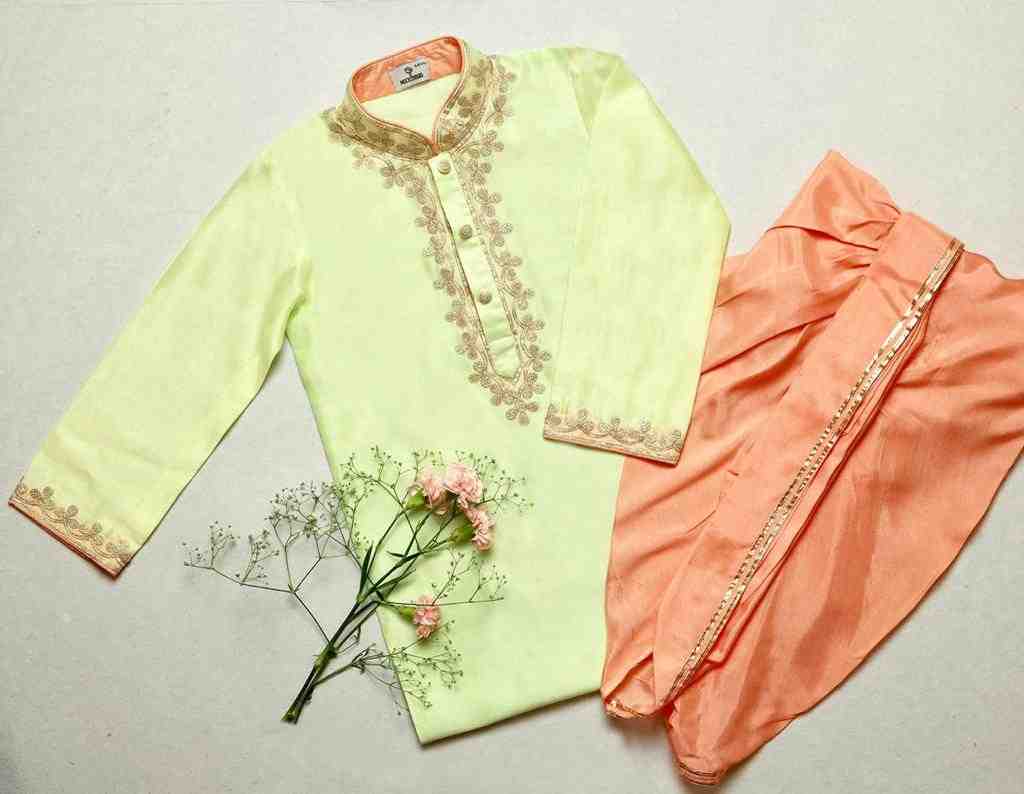 Ivory Kurta With Green Dhoti
