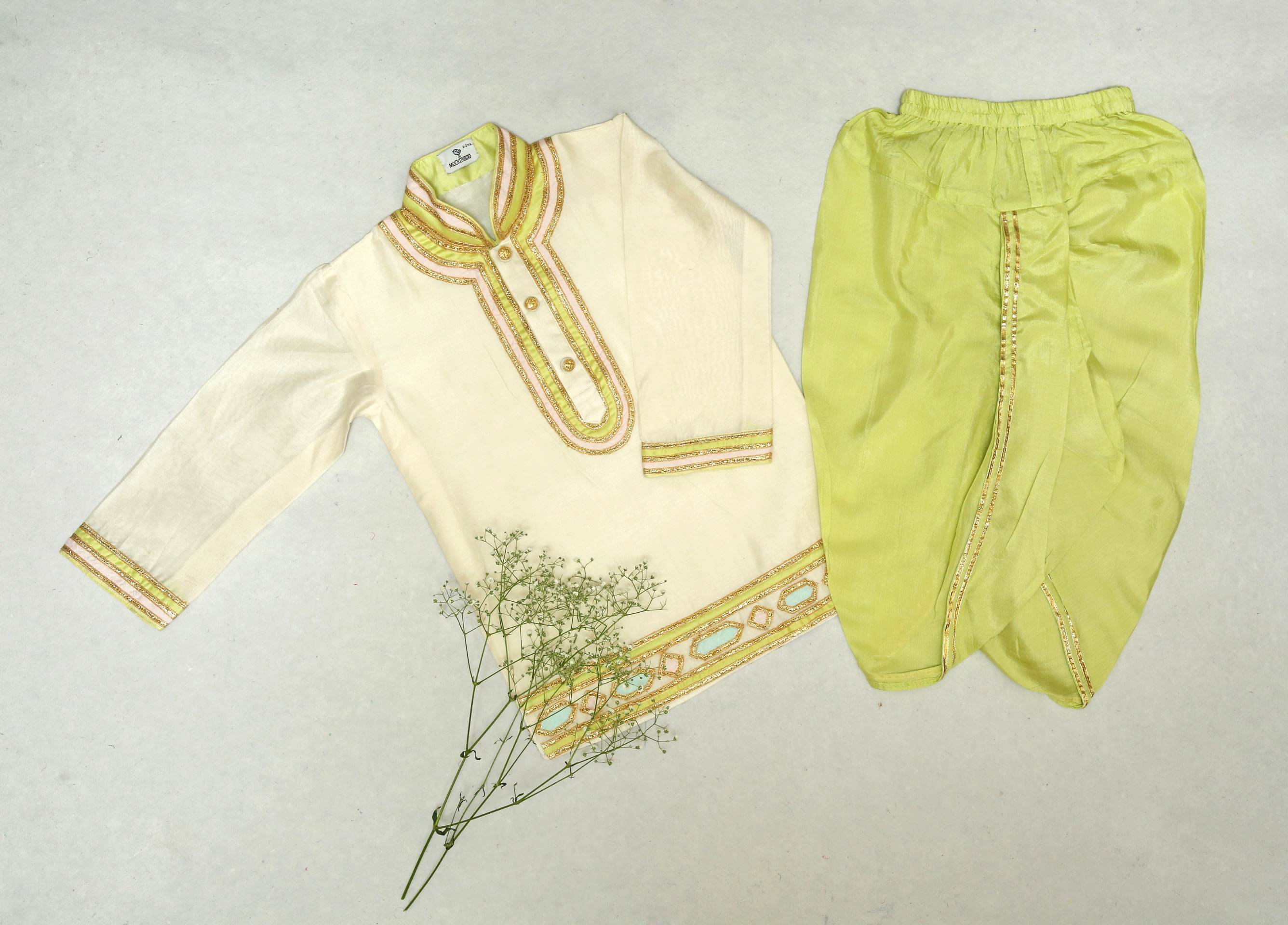 Pista Green Kurta With Silver Gota Work & Dhoti